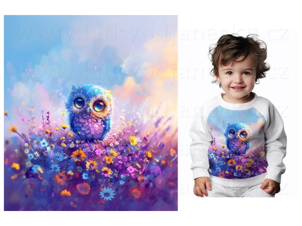 Panel je určen na přední díl. Na panel se vejde střih cca od miminka do velikosti 120. Na zadní díl a rukávy je potřeba dokoupit bavlněný úplet - stačí vždy délka panelu. Např, k tomuto panelu bavlněný úplet - 50 cm.