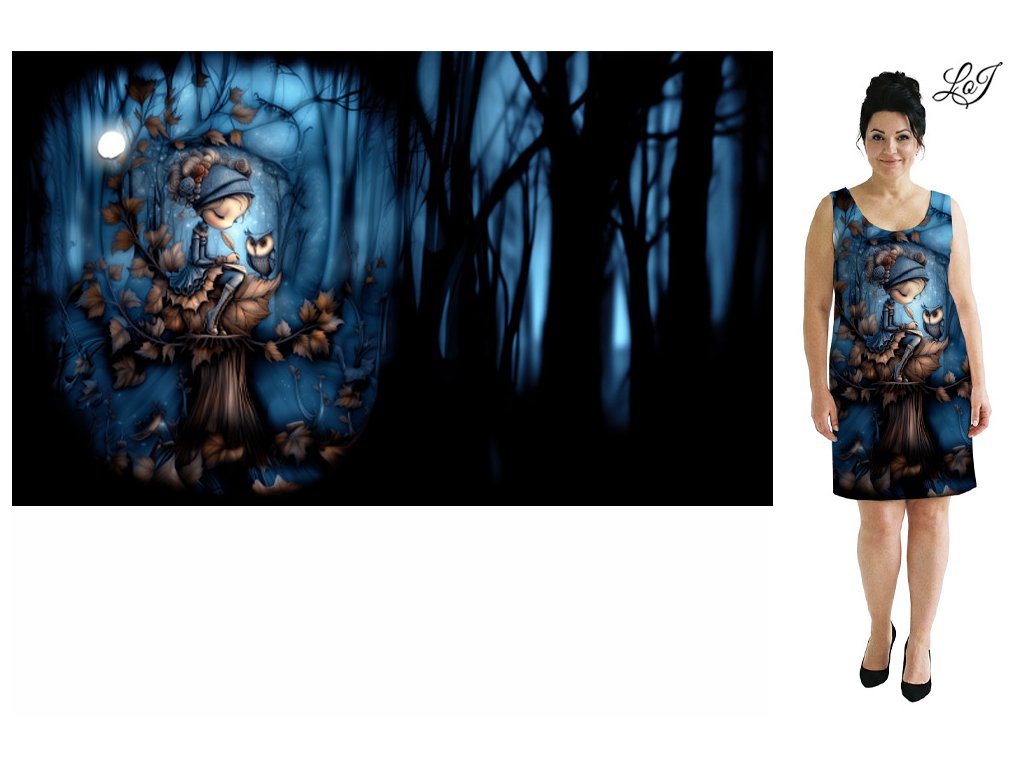 N.SKLADEM BŘEZEN - Bavlněný úplet 180g - PANEL 100 cm - Dívka na pařezu