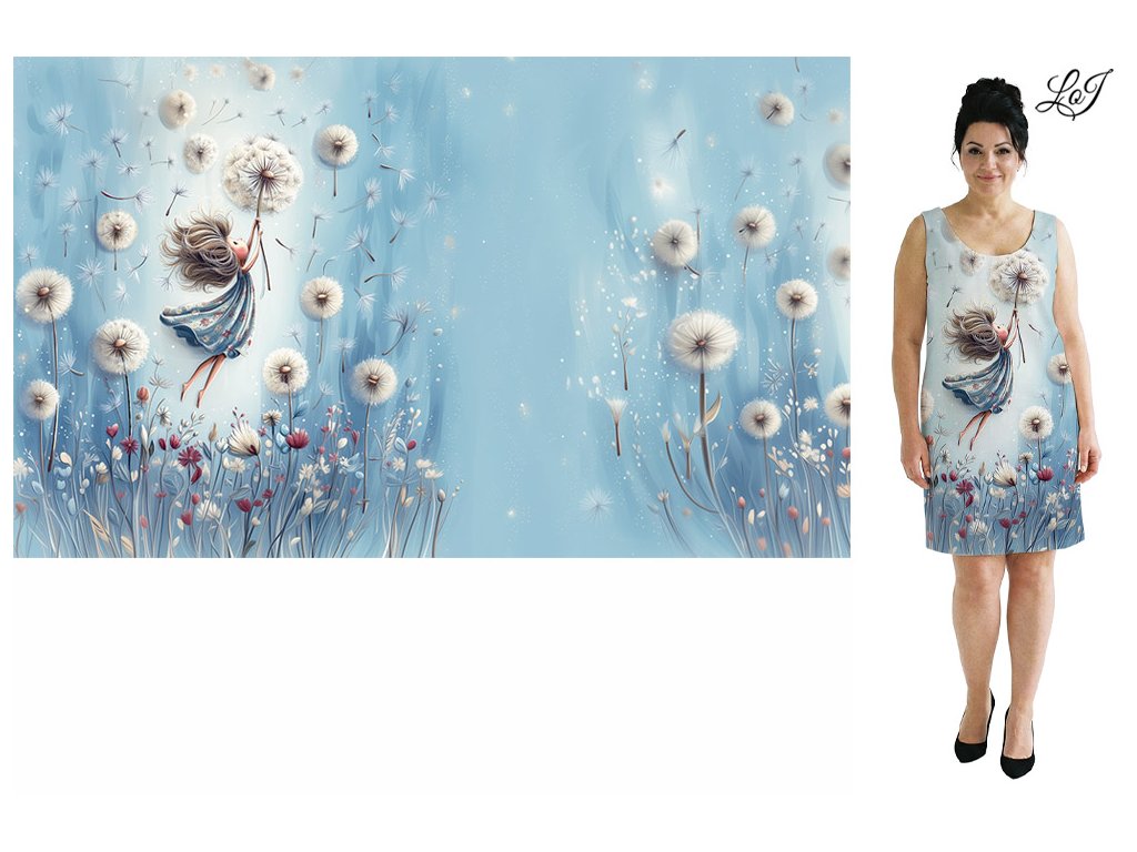 N.SKLADEM BŘEZEN - Bavlněný úplet 180g - PANEL 100 cm - Let s pampeliškou