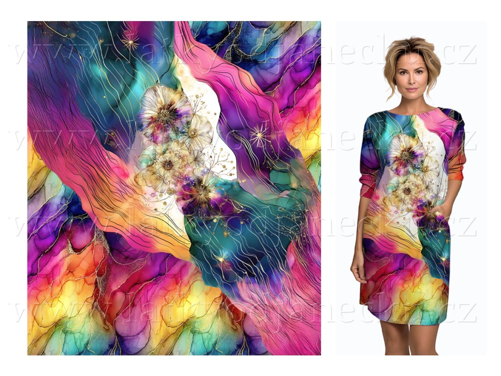 Bavlněný úplet TOP 200g - PANEL na přední díl XL 100 cm - Elixír Květy