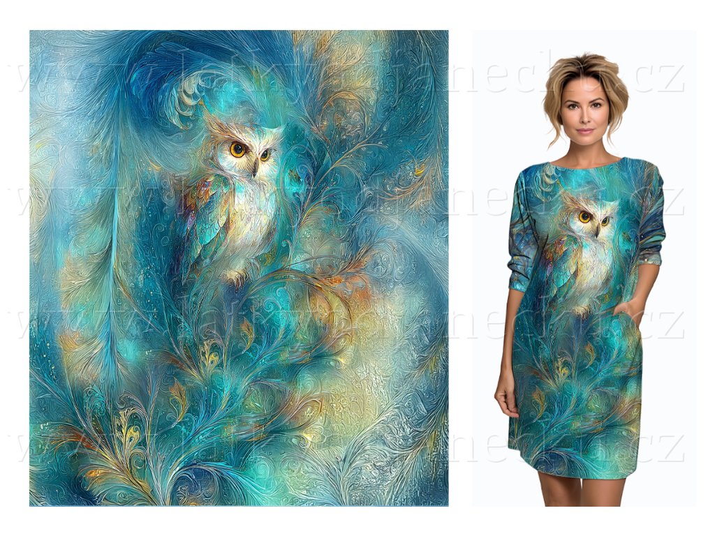 Bavlněný úplet TOP 180g - PANEL na přední díl XL 100 cm - Barvy duhy Sova