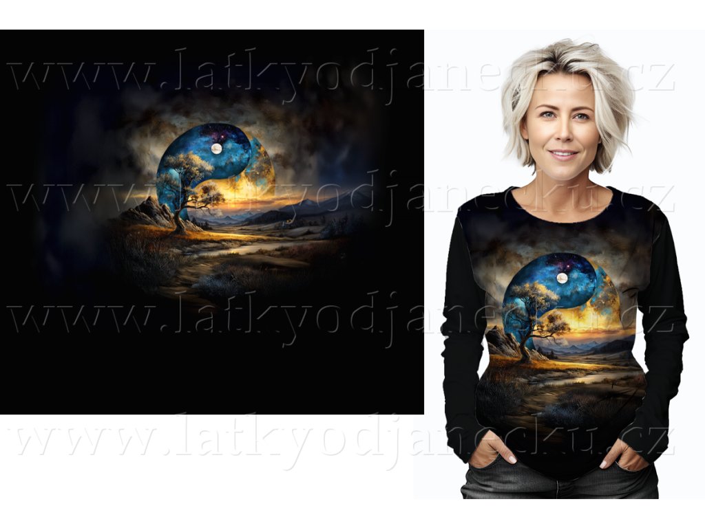 SKLADEM 12/2 - Bavlněný úplet 200g - PANEL na přední díl XL 80 cm - Jing Jang měsíc