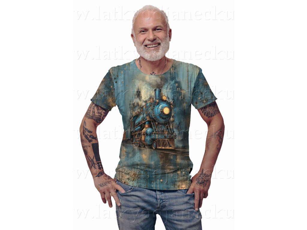 SKLADEM 12/2 - Bavlněný úplet 200g - PANEL na přední díl XL 80 cm - Steampunk Vlak