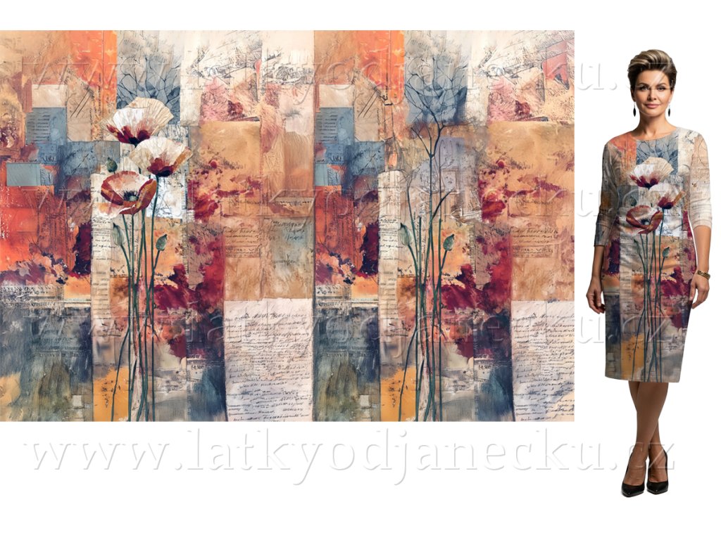 SKLADEM 11/4 - Bavlněný úplet 200g - Panel na šaty 120 cm - Pergamen Máky