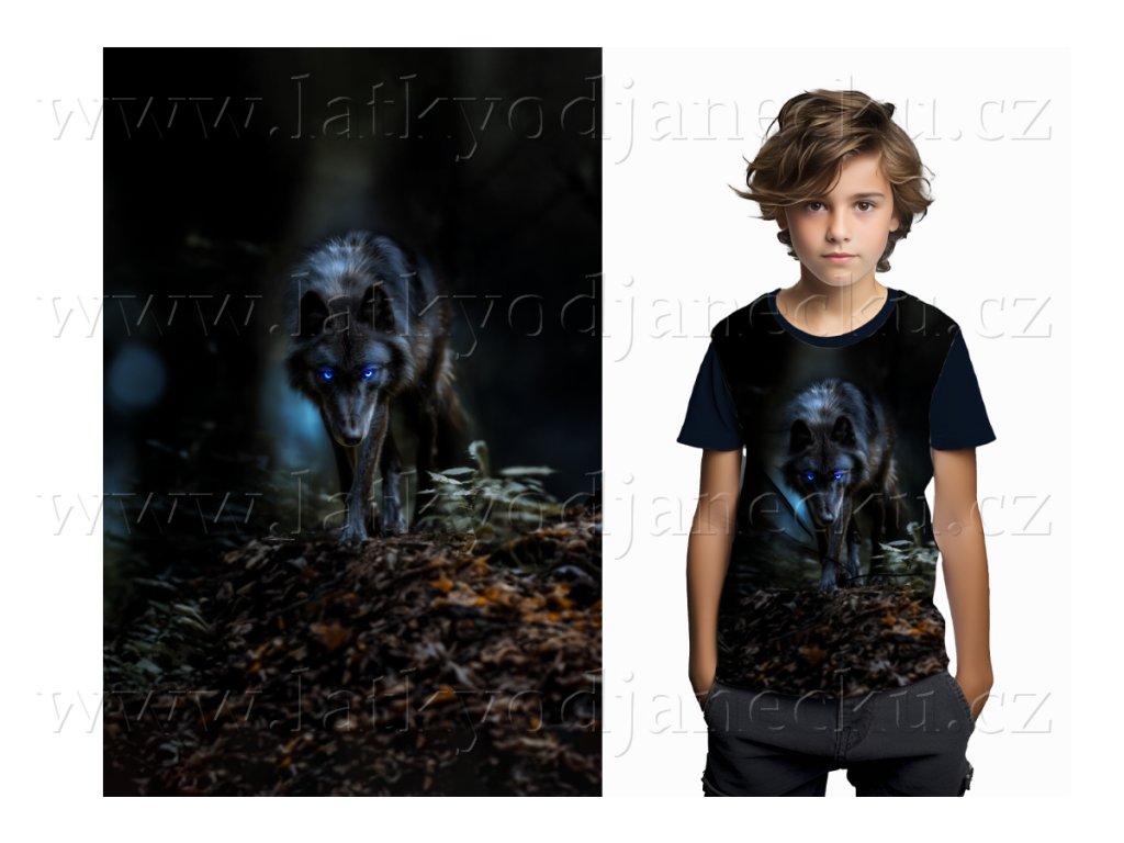 SKLADEM 11/3 - Bavlněný úplet - PANEL na přední díl trička pro děti M - Drsný vlk