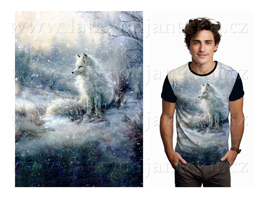 SKLADEM 11/3 - Bavlněný úplet - PANEL na přední díl trička pro náctileté L - Bílá liška