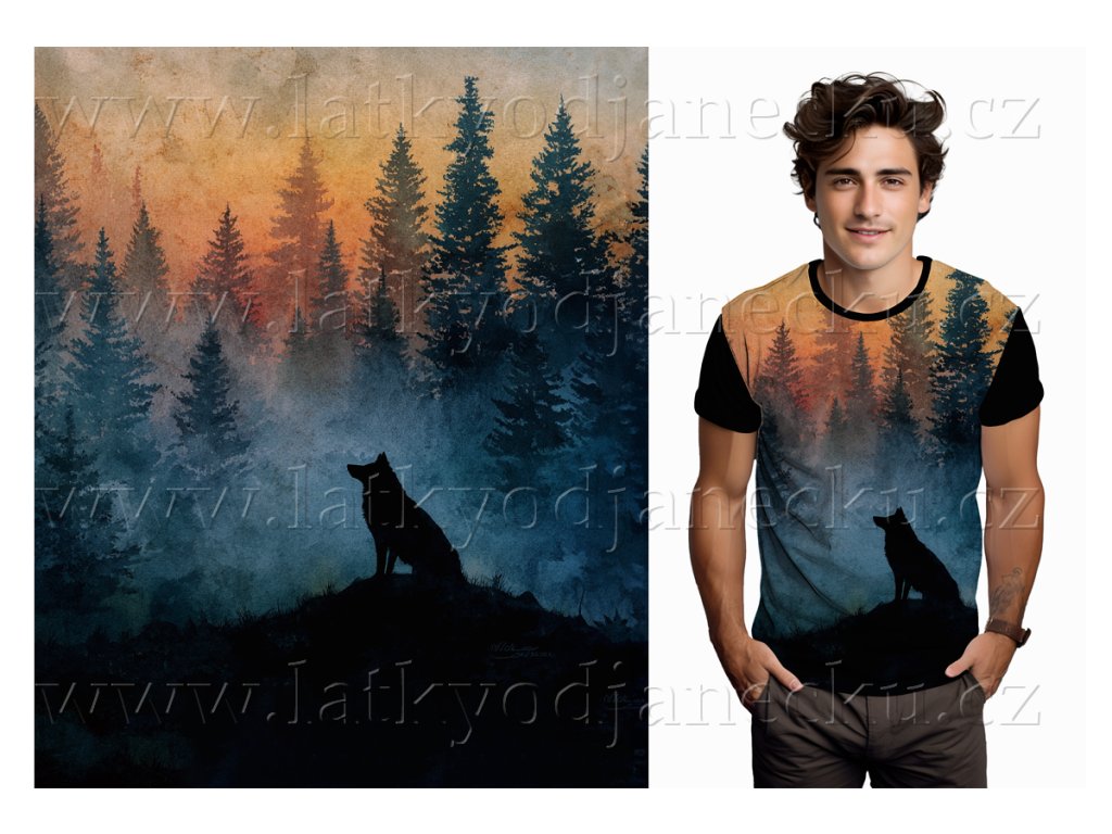 SKLADEM 11/3 - Bavlněný úplet - PANEL na přední díl trička pro náctileté L - Vlk před lesem