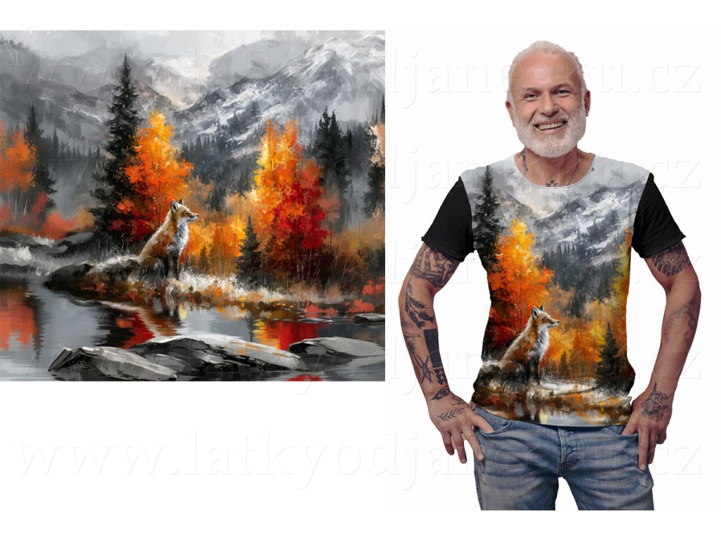 SKLADEM 11/3 - Bavlněný úplet - PANEL na přední díl trička XL 80 cm - Liška na horách