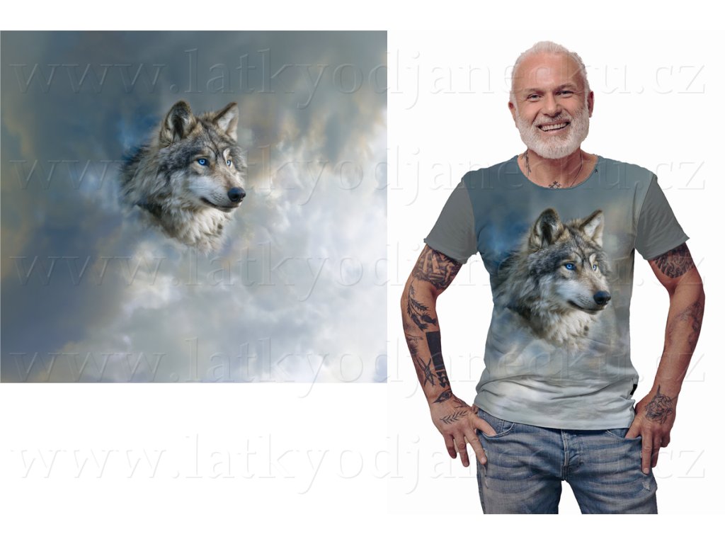 SKLADEM 11/3 - Bavlněný úplet - PANEL na přední díl trička XL 80 cm - Vlčí hlava