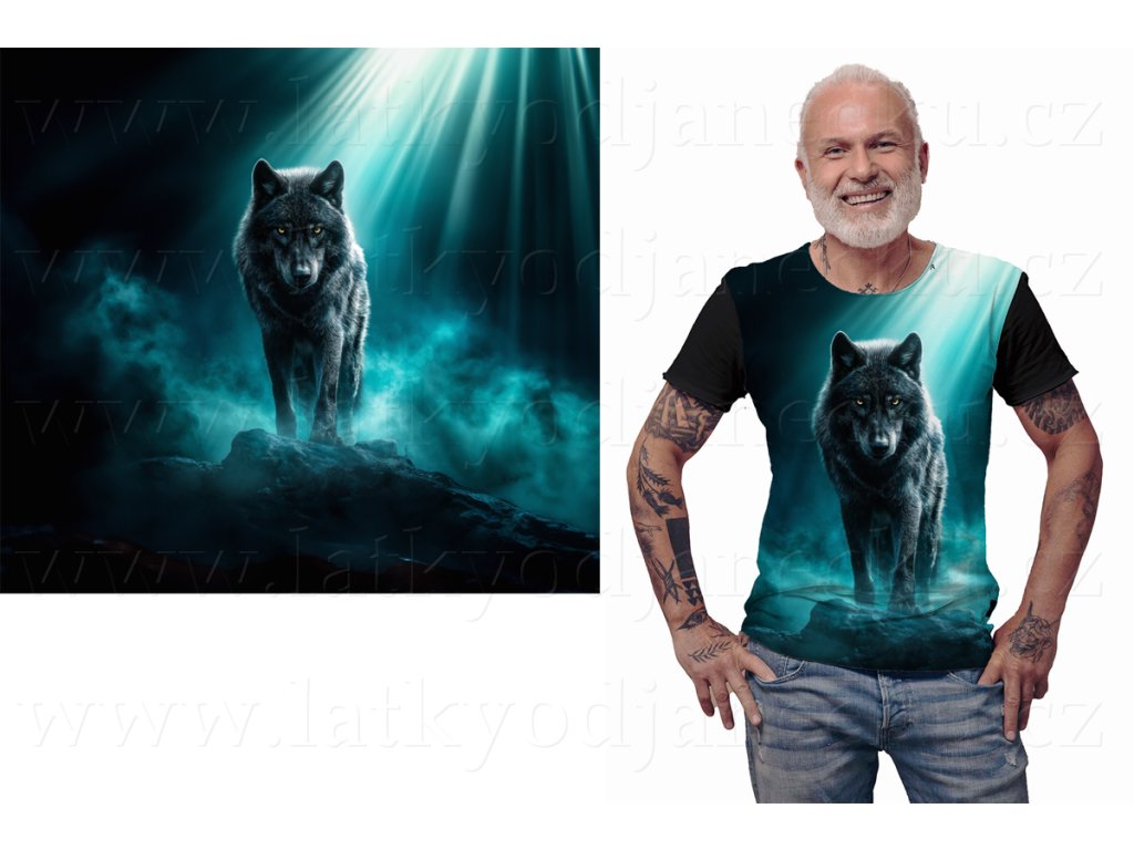 SKLADEM 11/3 - Bavlněný úplet - PANEL na přední díl trička XL 80 cm - Vlk na petrolejové