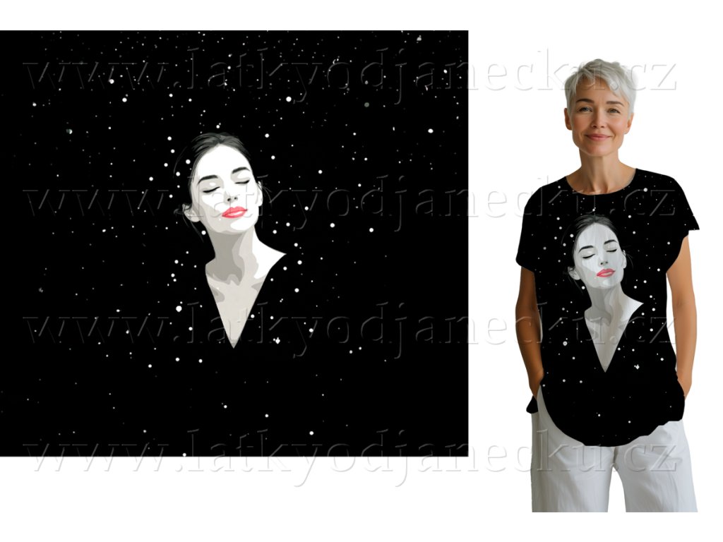 SKLADEM 11/2 - Bavlněný úplet - PANEL na přední díl trička XL 80 cm - Zasněná tvář