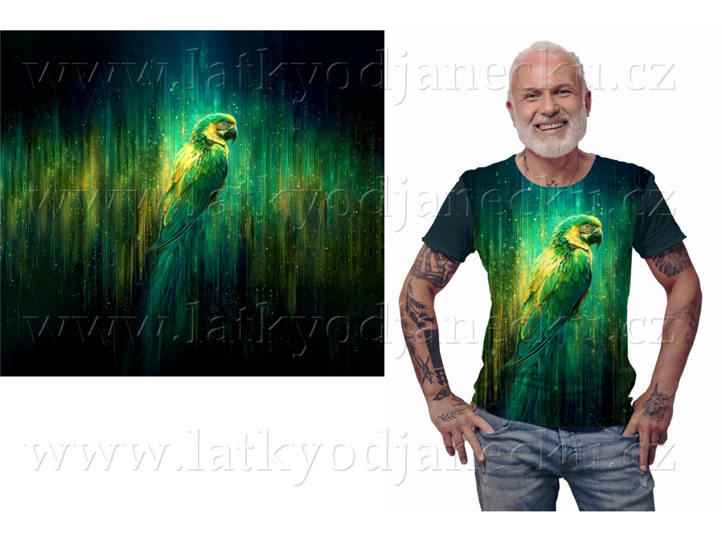 SKLADEM 11/3 - Bavlněný úplet - PANEL na přední díl trička XL 80 cm - Zelený papoušek