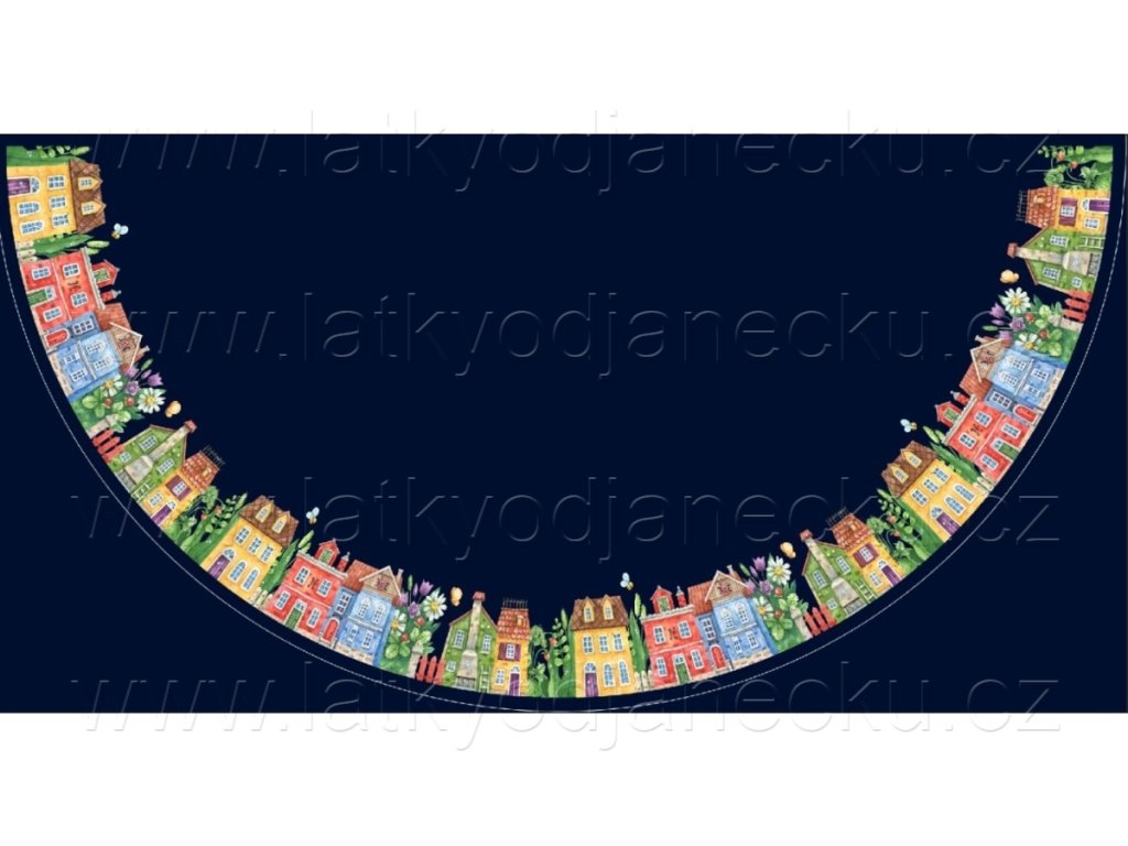 Bavlněný úplet - PANEL na půlkolovou sukni - Domečky