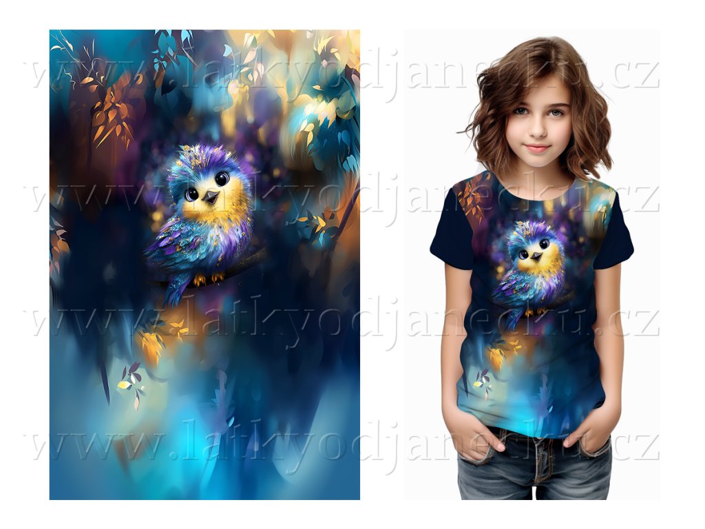 SKLADEM 11/1 - Bavlněný úplet PANEL na tričko M - Fialková sovička