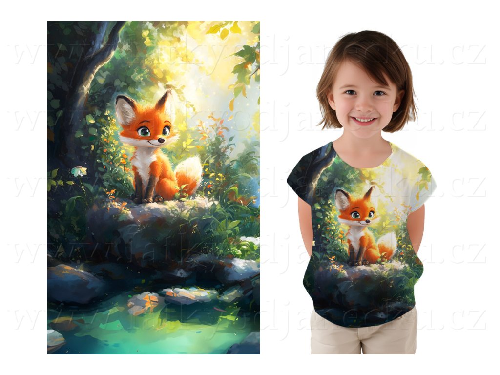 SKLADEM 11/1 - Bavlněný úplet PANEL na tričko M - Liška u potoka