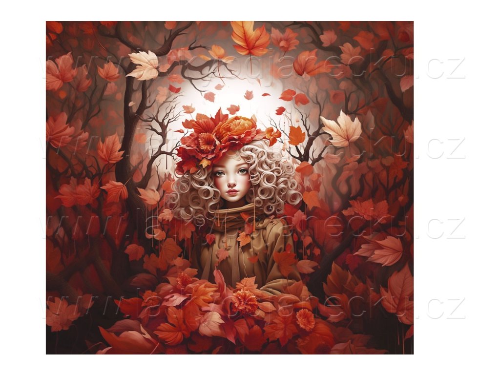 Bavlněný úplet - PANEL XL 80 cm - Dívka v listí