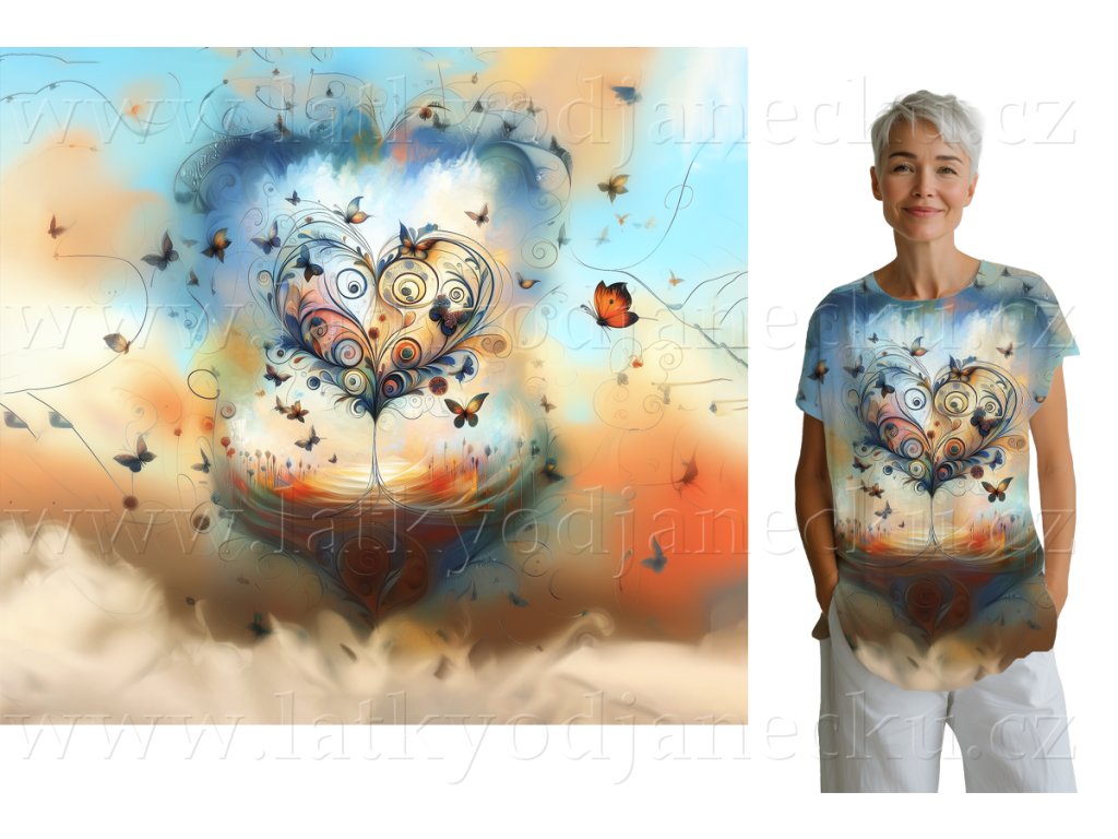 Bavlněný úplet - PANEL XL 80 cm - Motýlí srdce