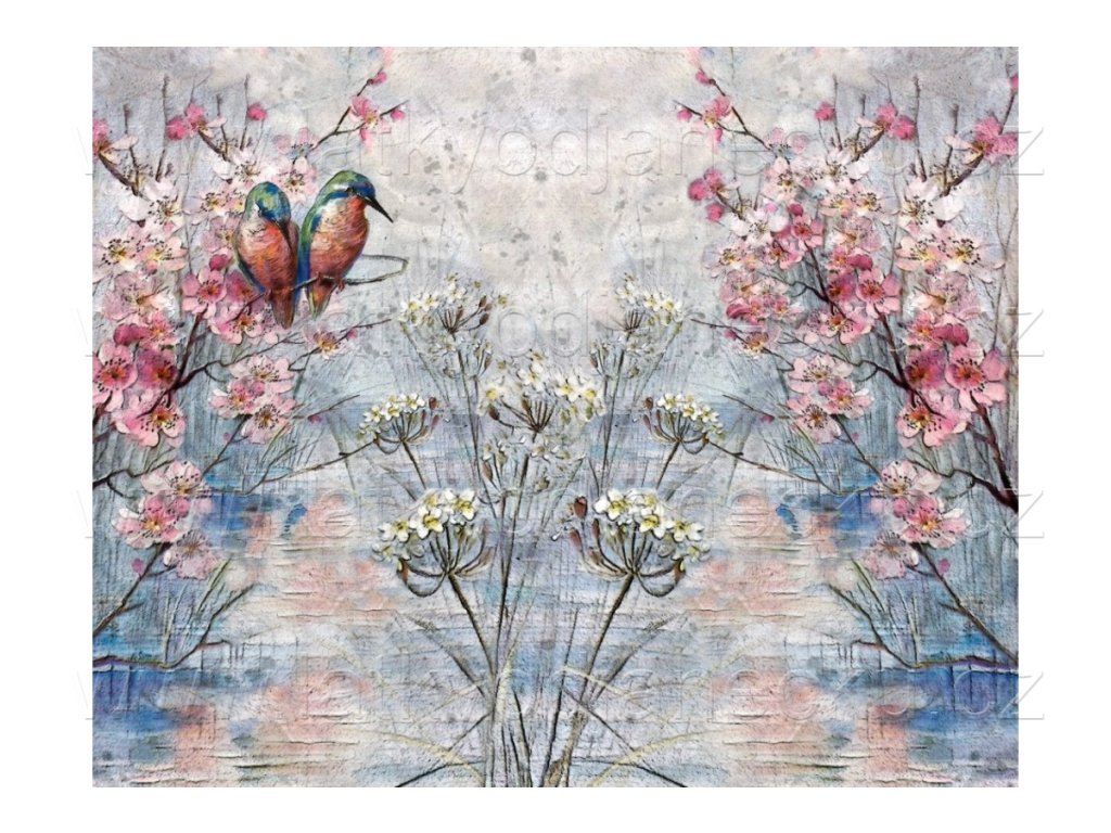 Bavlněný úplet - PANEL XL 80 cm -Zamilovaní ptáčci