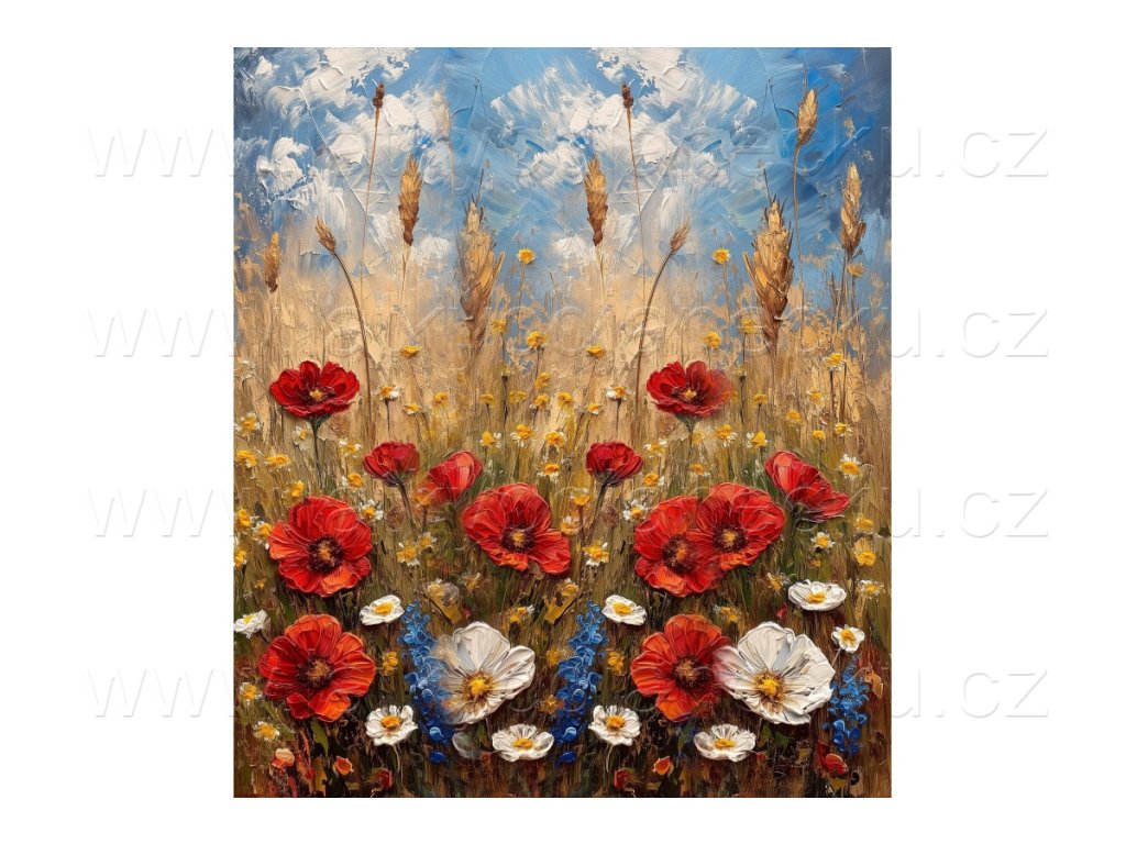 Bavlněný úplet TOP 180g - PANEL na přední díl XL 100 cm - Luční máky