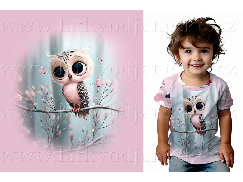 Bavlněný úplet TOP 180g - PANEL S - Růžová - Sova