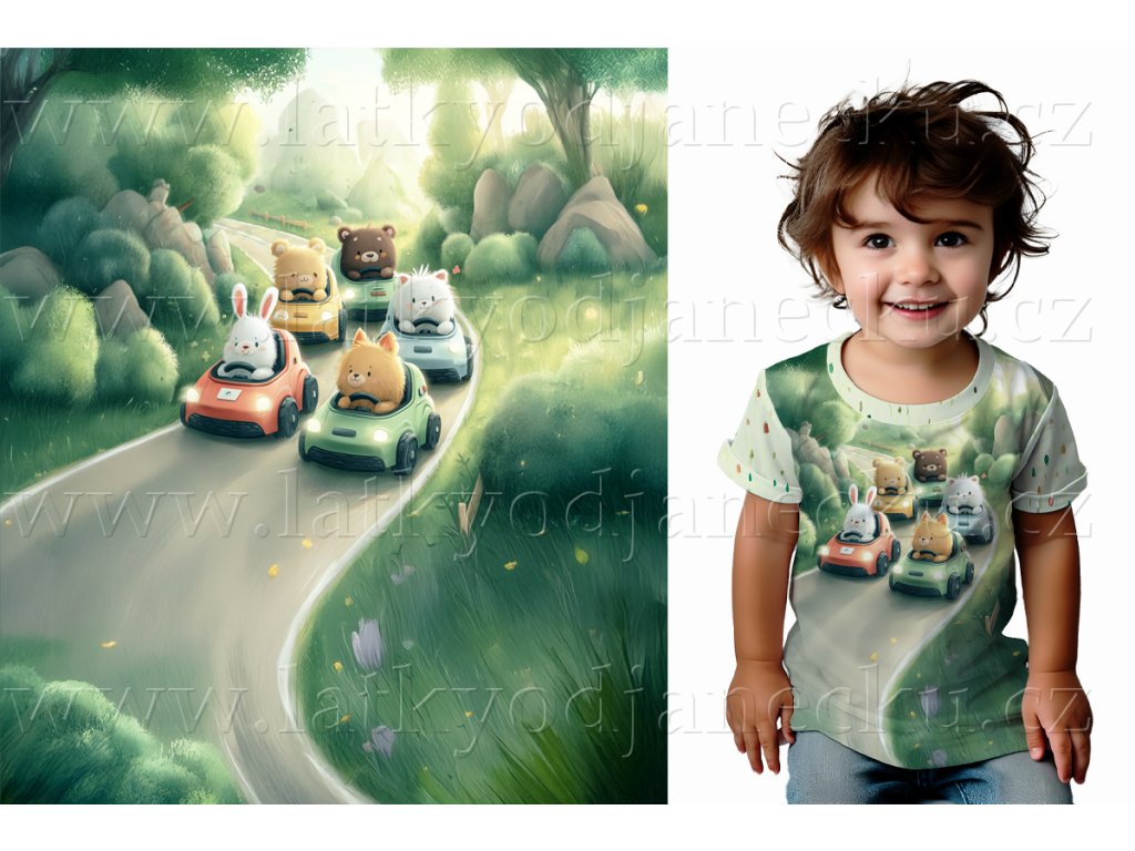 Bavlněný úplet TOP 180g - PANEL S - Zelená - Auta