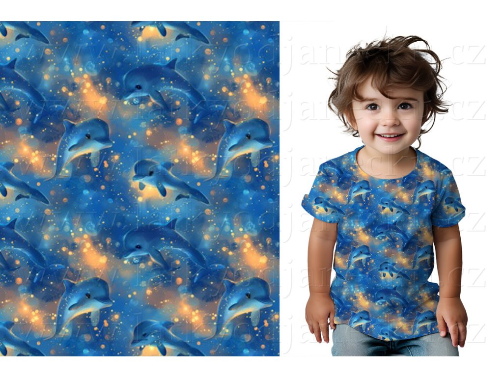Bavlněný úplet TUR 180g - Delfíni na modré - KUS 0,9m