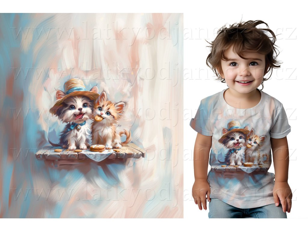 Bavlněný úplet * PANEL S * Pejsek v klobouku s kočičkou