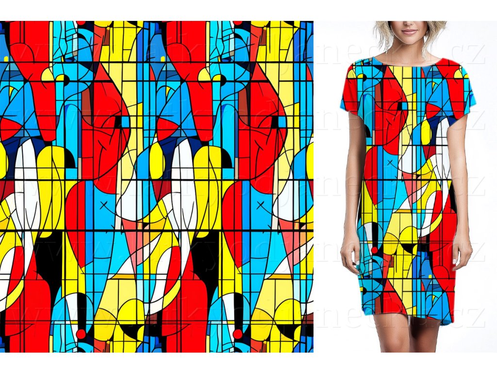 Tento funkční úplet se stříbrem promění váš oděv v umělecké dílo. Abstraktní motiv s barevnými tvary evokuje barevný labyrint. Oděv se stane dominantním prvkem vašeho outfitu a dodá vám originální a nepřehlédnutelný styl