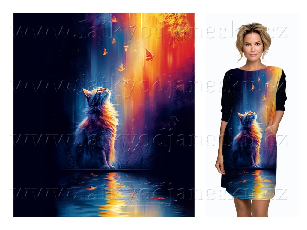 II.JAKOST - Bavlněný úplet TOP 180g - PANEL na přední díl XL 100 cm - Kočka s motýly