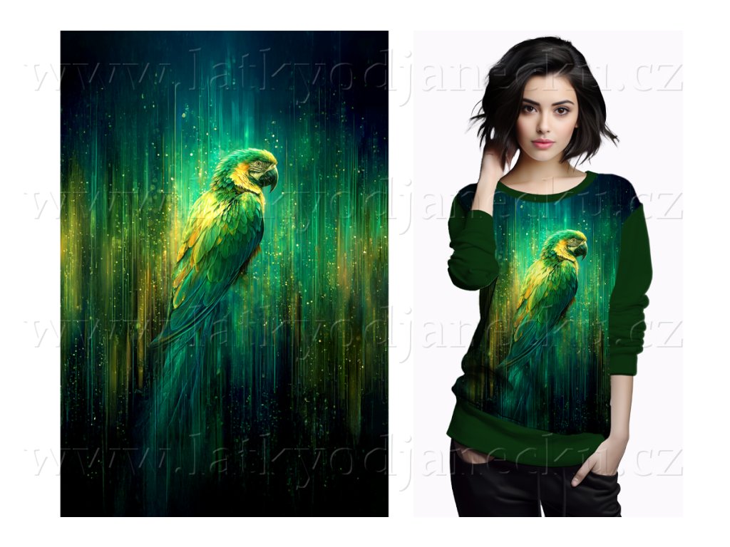 II.JAKOST - Teplákovina 240g - PANEL na přední díl mikiny pro děti M - Zelený papoušek