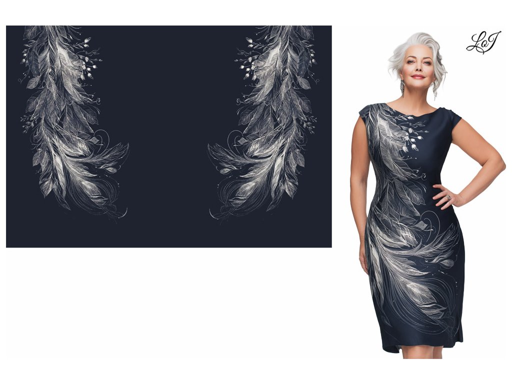 T.SKLADEM BŘEZEN - Kimo úplet - PANEL 100x158 cm - Stříbrné peří
