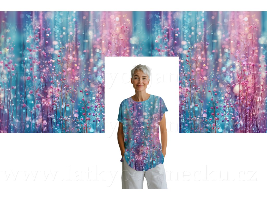Viskozový úplet 230g - Panel 80 cm - Duhové poupata