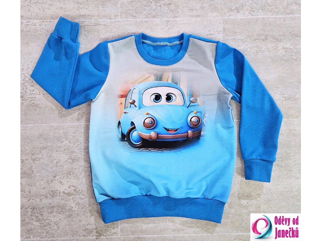 ODĚVY SKLADEM * Mikina Modré autíčko * vel. 104