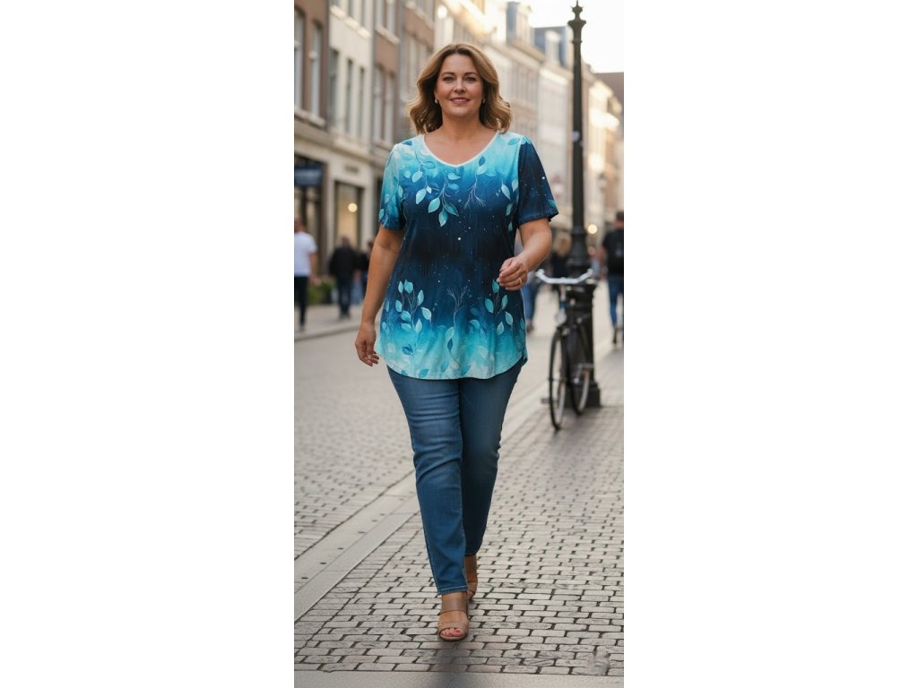 ODĚVY SKLADEM - Halena/Tunika Tyrkysová zahrada- vel.2XL
