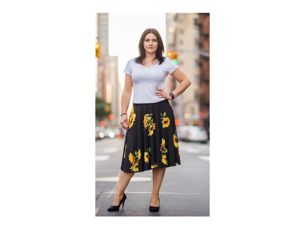 Půlkolová sukně ze silky látky vás okouzlí svou lehkostí, splývavostí a elegancí, která krásně zdůrazní vaši postavu. Díky svému příjemnému materiálu je ideální na celodenní nošení a hodí se jak k elegantním, tak ležérním kombinacím.