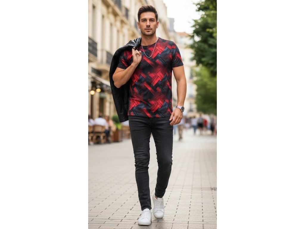 ODĚVY SKLADEM - Pánské tričko Červené káro - vel. L