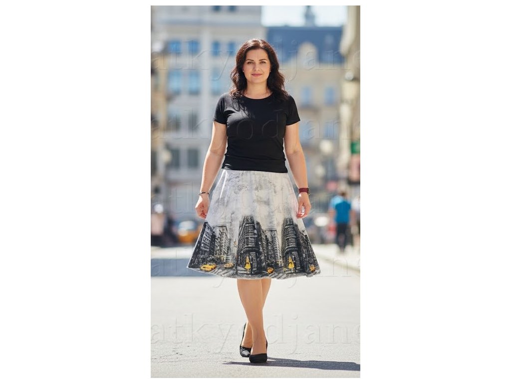 ODĚVY SKLADEM - Půlkolová sukně Z bavlněného úpletu Městská skica - vel.XL