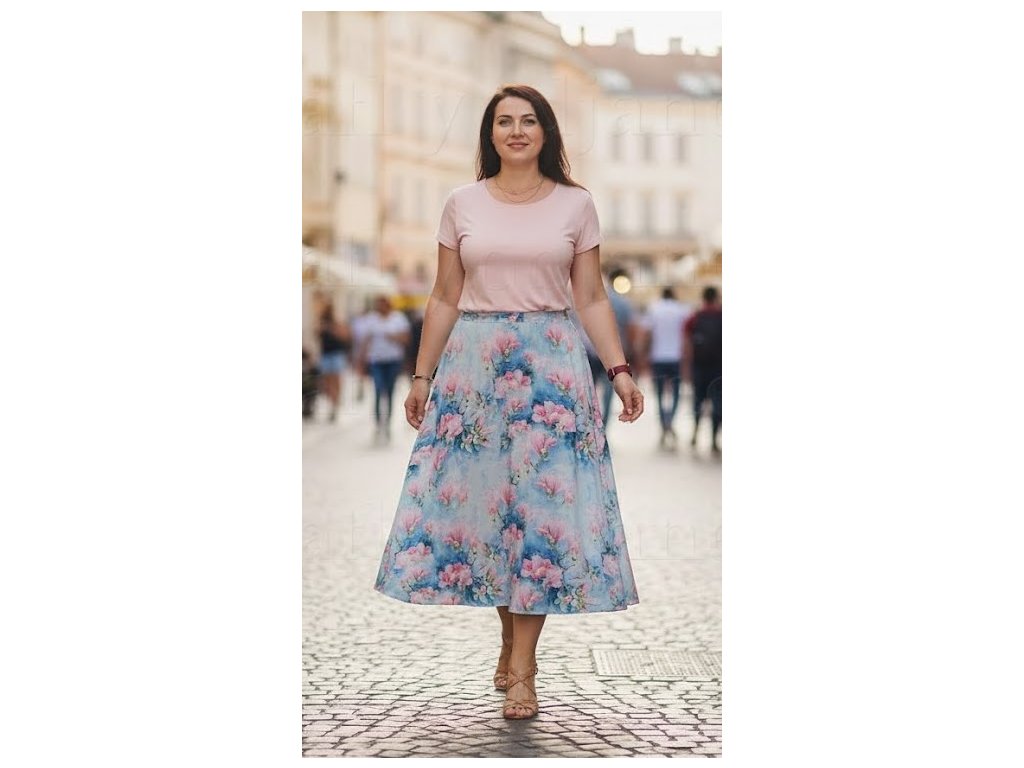 Půlkolová sukně ze silky látky vás okouzlí svou lehkostí, splývavostí a elegancí, která krásně zdůrazní vaši postavu. Díky svému příjemnému materiálu je ideální na celodenní nošení a hodí se jak k elegantním, tak ležérním kombinacím.