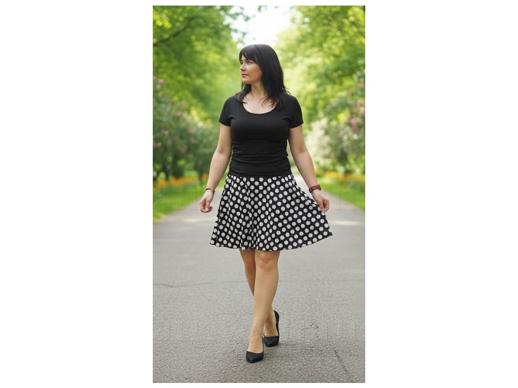 ODĚVY SKLADEM - Půlkolová sukně ZE SILKY Puntíky - vel. XL