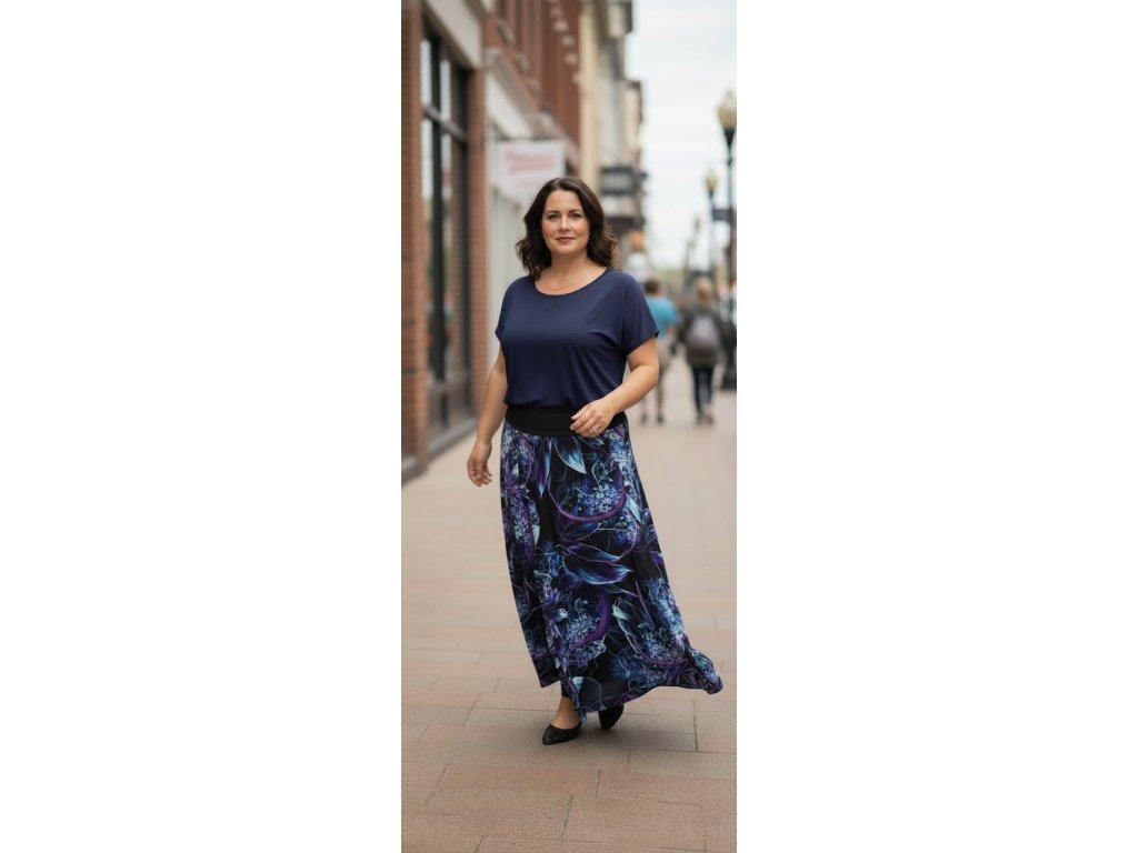 ODĚVY SKLADEM - Půlkolová sukně ZE SILKY - Vesmírná fantazie - vel.3XL