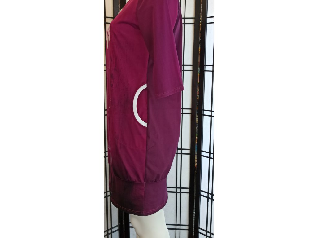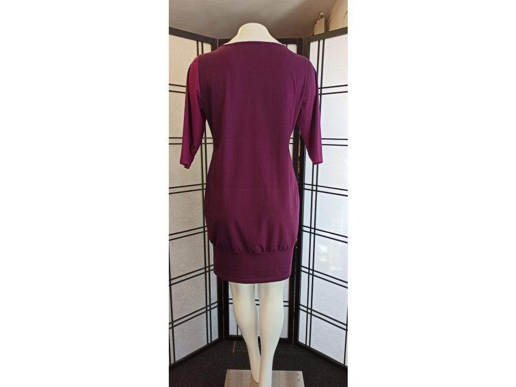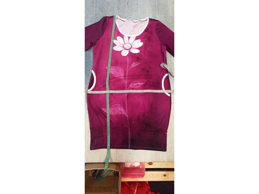 Šaty mají polopřiléhavý střih, který jemně kopíruje siluetu, kulatý výstřih, 3/4 rukávy zajišťují komfort i v teplejších dnech. Na bocích šatů jsou všité diskrétní kapsy, které zvyšují funkčnost a podtrhují ležérní styl. Šaty jsou ukončeny do širokého lemu.