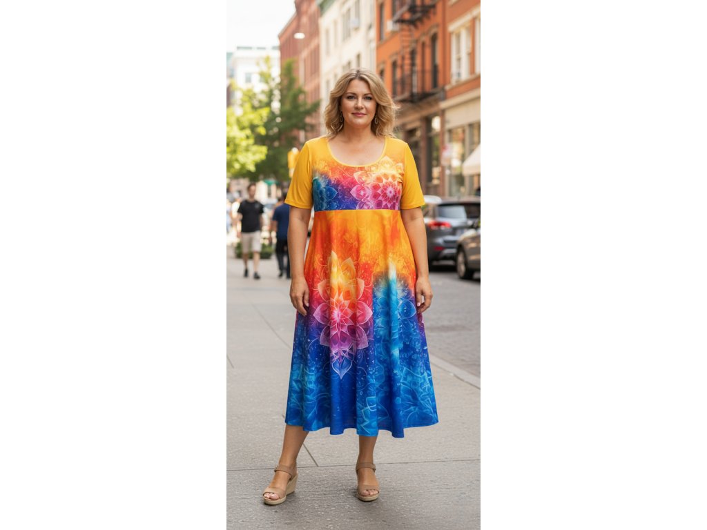 ODĚVY SKLADEM * Šaty Duhová Mandala * vel. 2XL
