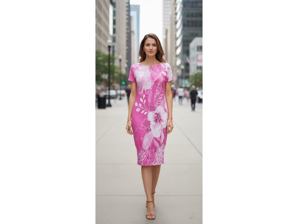 Šaty s kimono rukávkem mají polopřiléhavý střih a kulatý výstřih pro maximální komfort. Spodní délka šatů má širší, efektní lem, který dodává šatům elegantní dokončení a vizuálně je zkracuje.
