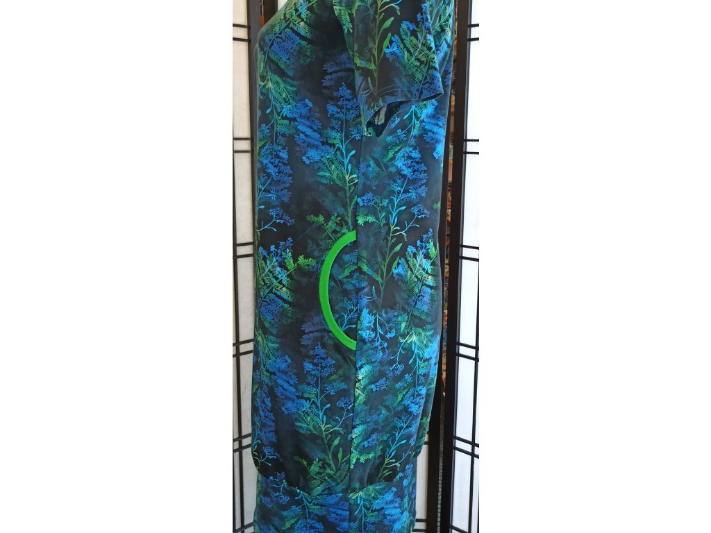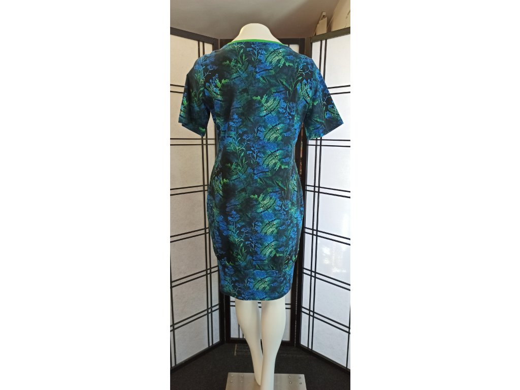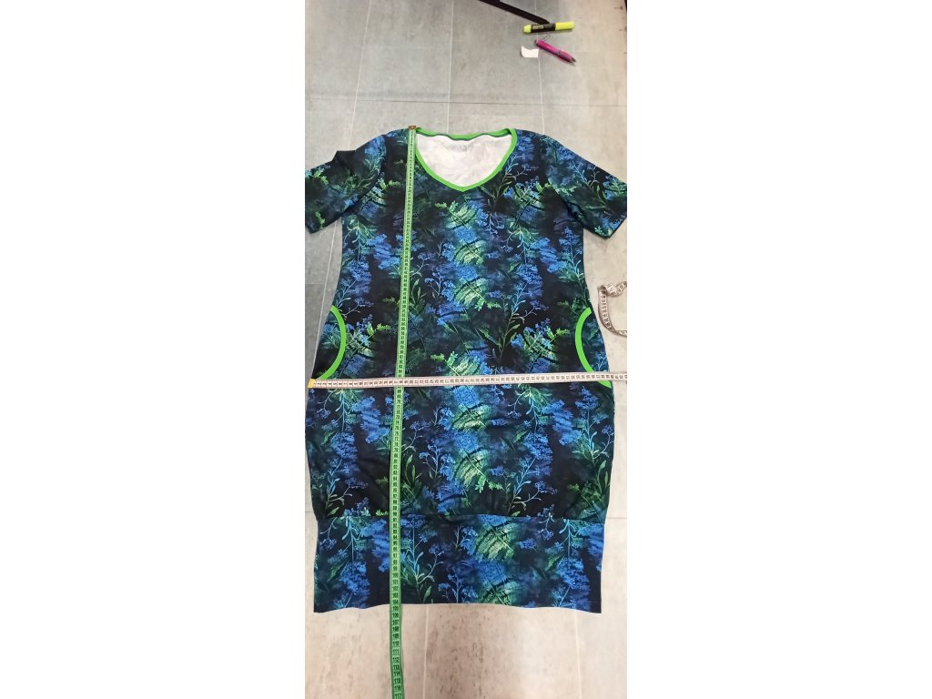 Šaty mají polopřiléhavý střih, který jemně kopíruje siluetu, a elegantní V-výstřih, který opticky prodlužuje krk. Krátké rukávy. Na bocích šatů jsou všité diskrétní kapsy, které zvyšují funkčnost a podtrhují ležérní styl. Šaty jsou ukončeny do širokého lemu.