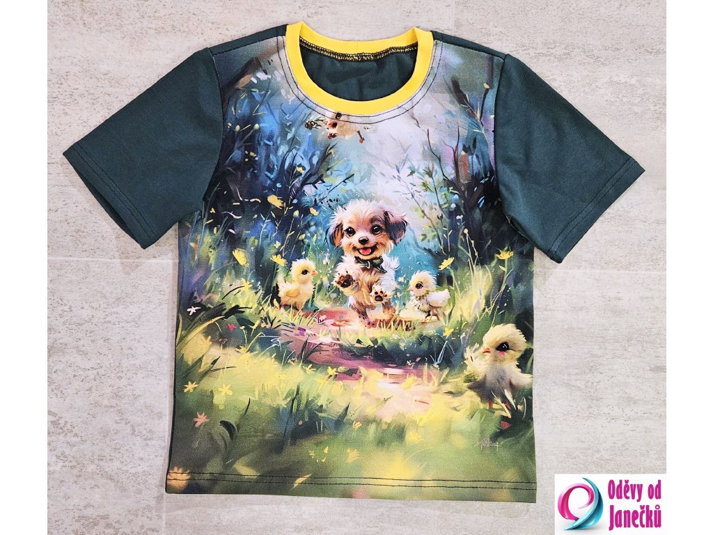 ODĚVY SKLADEM * Tričko Pejsek s kuřaty * vel. 104