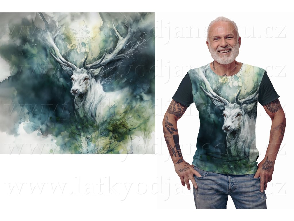 SKLADEM 11/3 - Bavlněný úplet - PANEL na přední díl trička XL 80 cm - Malovaný jelen