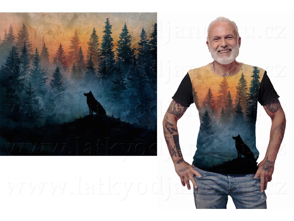 SKLADEM 11/3 - Bavlněný úplet - PANEL na přední díl trička XL 80 cm - Vlk před lesem