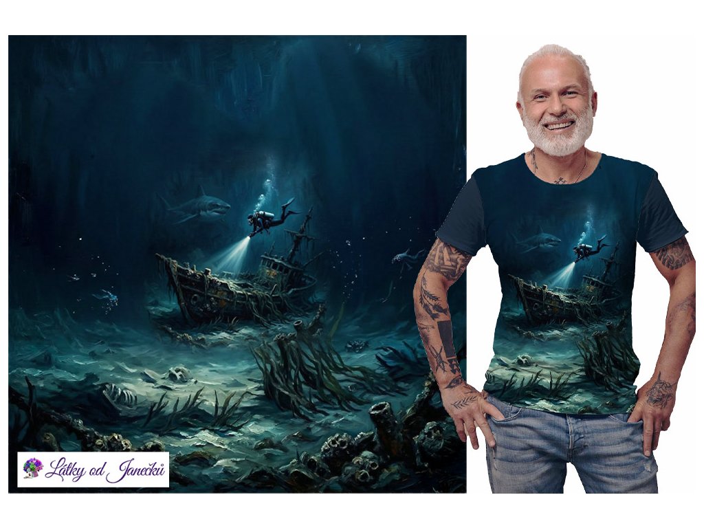 SKLADEM KVĚTEN - Bavlněný úplet - PANEL XL 80 cm - Potopený vrak