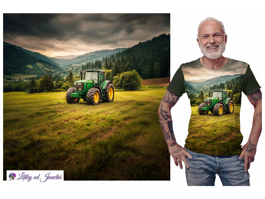 SKLADEM DUBEN - Bavlněný úplet - PANEL XL 80 cm - Traktor na poli