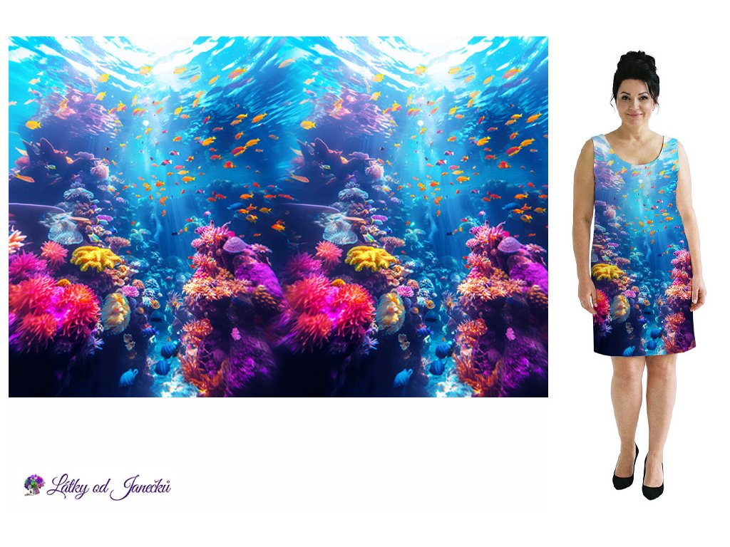 SKLADEM KVĚTEN - Bavlněný úplet TOP 180g - PANEL 100 cm - Korálový útes